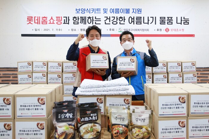 롯데홈쇼핑(대표 이완신)이 7일 초복을 맞아 영등포구 소외계층 200가구에 보양식 키트 및 여름 이불을 전달했다.