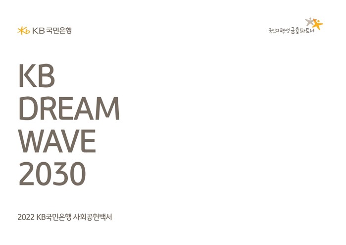 이번 백서에는 ▲KB Dream Wave 2030 ▲함께 그린 내일 ▲세상을 바꾸는 나눔 등을 주제로 하는 다양한 사회공헌활동 내용이 담겼다.