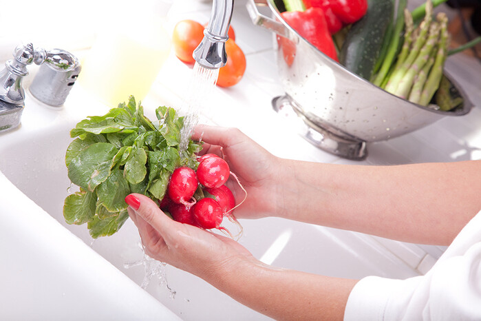 채소 및 과일의 식중독 예방을 위해서는 식재료 세척용으로 검증받은 제품을 이용해 5분 이상 물에 담근 후 3회 이상 깨끗하게 세척해야 한다. 잎채소의 경우 한 장씩 흐르는 물을 이용해 3회 이상 세척하되 육안으로도 깨끗하지 않다면 다시 세척을 해야 한다.