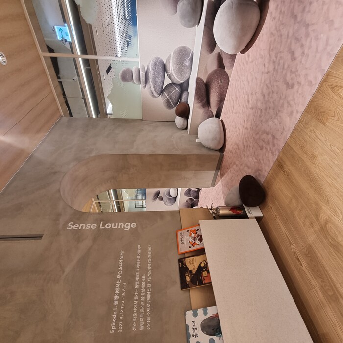 이번에 모카룸 센스 라운지에서 진행되는 전시는 천 위에 실을 쏘아 심는 섬유공예 ‘터프팅’ 전문 스튜디오 앤드엣(And-et)과 협업했다. 촉각을 키워드로 숲‧호수 등 자연을 연상시킬 수 있는 터프팅 작품들로 공간을 구성했다.