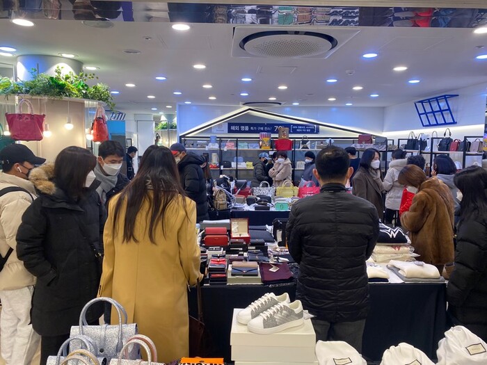 ▲ 인비트리가 지난 1일 강남 엔터식스(강남고속버스터미널 지하)에 새로 오픈한 명품 팝업스토어에 명품을 구매하려는 고객들로 북적이고 있다. [사진=인비트리 제공] |