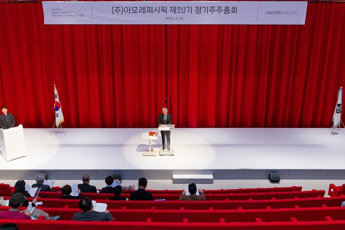 | ▲ 김승환 아모레퍼시픽 대표이사는 26일 아모레퍼시픽 본사에서 열린 제20기 정기주주총회에서 인사말을 하고 있다. [사진=아모레퍼시픽] |