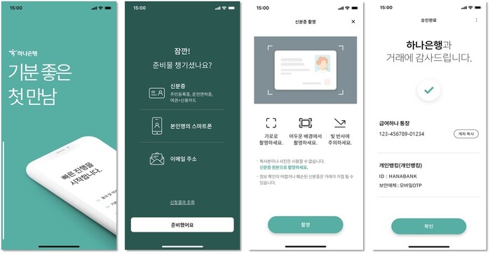 ▲ 하나은행의 모바일 ‘비대면 계좌개설 서비스’ [사진=하나은행 제공] |