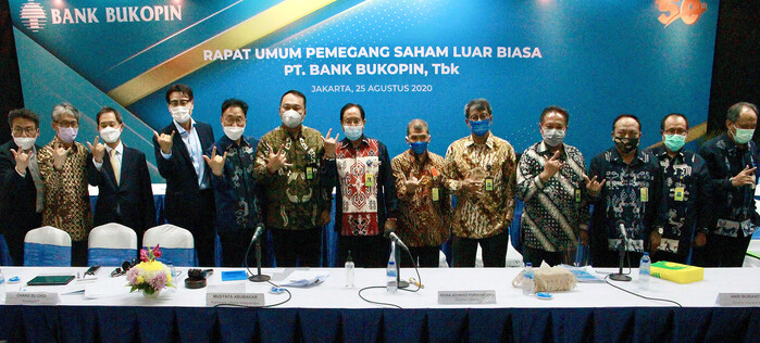 ▲ 25일 인도네시아 자카르타에 위치한 부코핀은행 본점에서 열린 주주총회에서 KB국민은행과 부코핀은행 이사진 및 경영진들이 기념촬영을 하고 있다. [사진= KB국민은행 제공] |