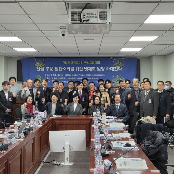 [메가경제=정진성 기자] 건물 부문 탄소중립 전환 전략을 논의하기 위한 ‘저탄소 경제(LCE) 국회토론회’가 12월 30일 여의도 국회의원회관 제2간담회실에서 개최됐다.
