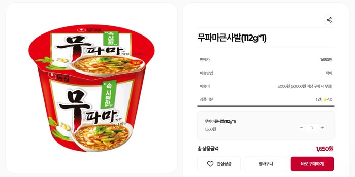 ▲ 농심 자사몰에서 판매 중인 무파마 큰사발 112g [농심몰 캡처] |