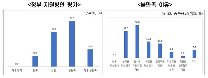 다음으로 ▲부족한 지원 규모(25.0%) ▲복잡한 지원절차(15.4%) ▲불명확한 기준(13.5%) 등이 뒤를 이었다.