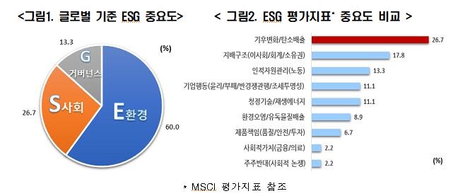 이어 김 실장은 “글로벌 시장에서는 환경의 중요성이 큰 반면 국내에서는 상대적으로 사회와 지배구조(G)를 강조하는 경향이 있어 국내기업의 부담이 커질 수 있다”고 덧붙였다.