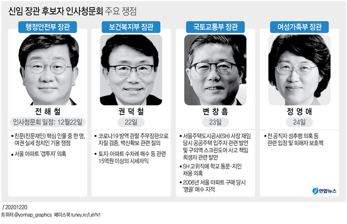 ▲ 신임 장관 후보자 인사청문회 주요 쟁점. [그래픽= 연합뉴스] |
