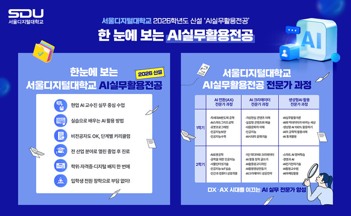 | ▲ 서울디지털대학교 2026학년도 신설 ‘AI실무활용전공’ [사진=서울디지털대] |