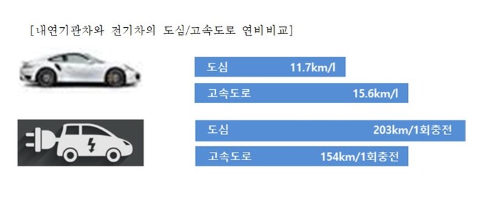 현대해상 교통기후환경연구소의 현장실험에 따르면 내연기관차는 도심 주행보다 고속도로 주행 시 연비가 33% 향상됐지만, 전기차는 오히려 24% 감소한 것으로 분석됐다.
