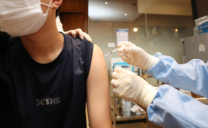 ▲ 16∼17세 청소년에 대한 코로나19 예방접종 첫날인 18일 충북 청주시 흥덕구 가경동 소재 이비인후과에서 한 학생이 백신 접종을 하고 있다. [청주=연합뉴스] |