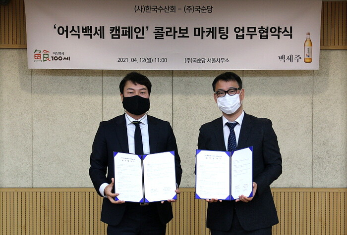 국순당은 한국수산회와 수산물 소비 촉진을 위해 '어식백세 캠페인' 활성화를 위한 협업 마케팅 업무협약(MOU)을 체결했다고 13일 밝혔다.