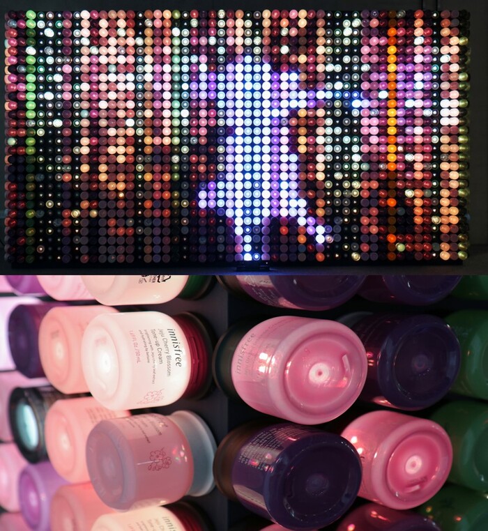 고객들이 아모레퍼시픽그룹 매장에 반납한 공병 중 1652개를 활용해 제작한 업사이클링 예술작품 ‘1652人의 여름들’은 관객참여형 인터랙티브 미디어아트다. 작품은 10월 세종문화회관에서 진행하는 ‘그림도시 S#5 Waypoint:서울’에서 만나볼 수 있다.