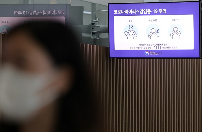 ▲ 12일 오전 인천국제공항 출국장 모니터에 표시된 신종 코로나바이러스 감염증(코로나19) 주의 안내문. [영종도=연합뉴스] |