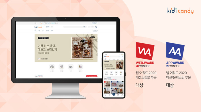 [메가경제=최낙형 기자] 이랜드리테일에서 운영하는 육아맘을 위한 커뮤니티 커머스 플랫폼 '키디캔디'는 한국인터넷전문가협회가 주최하는 ‘웹어워드 코리아 2020’과 ‘스마트앱어워드 2020’ 패션/쇼핑 분야에서 각각 대상을 수상했다고 14일 밝혔다.