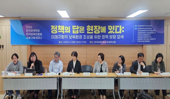 [메가경제=양대선 기자] 한국보육진흥원과 한국정책학회가 공동 주최한 세미나에 참여한 패널들이 ‘영유아교사 보육활동 보호를 위한 제도적 기반 마련과 정서·심리 지원, 현장 중심 지원체계 강화’의 중요성에 대해 논의하고 있다.