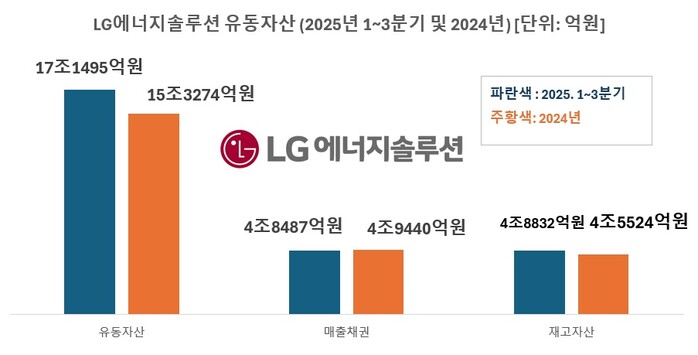 | ▲LG에너지솔루션, 2024년, 2025년 1~3분기유동자산, 매출채권, 재고자산 [단위: 억원] |