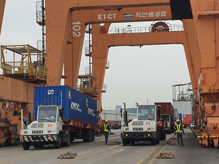 ▲ 인천항 E1 컨테이너터미널에서 운용중인 야드 트랙터 [사진= 인천항만공사 제공] |