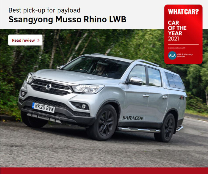 이에 앞서 지난해 12월 영국 사륜구동 자동차 전문지 4X4(포바이포) 역시 ‘2021 올해의 픽업 어워즈(Pick-up of the Year 2021)’에서 렉스턴 스포츠를 ‘최고 가치상(Best Value)’에, 렉스턴 스포츠 칸(현지명 무쏘 리노 LWB)을 ‘최고의 개성 있는 자동차(Best Individual Model)’에 선정했다.
