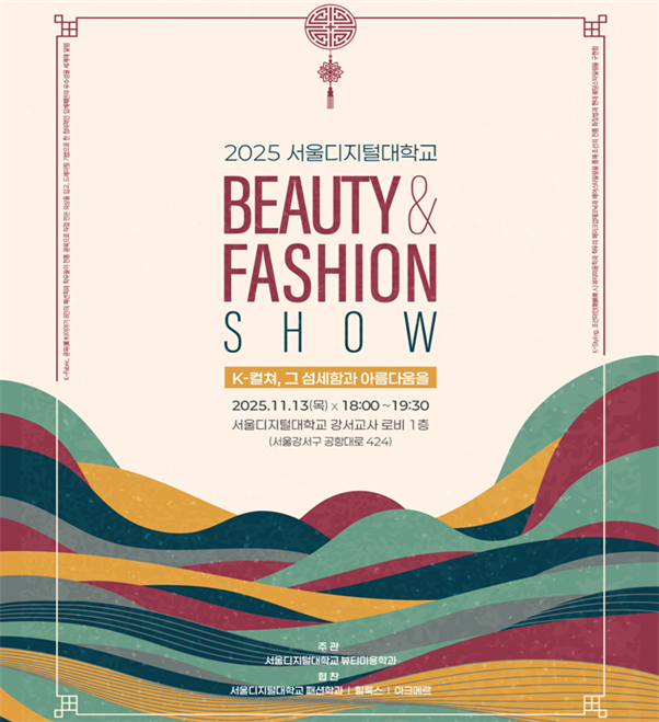 [메가경제=이상원 기자] 서울디지털대학교는 뷰티미용학과가 오는 13일 오후 6시부터 ‘서울디지털대학교 강서캠퍼스 1층 로비에서 ‘2025 SDU 뷰티&패션쇼’를 개최한다고 10일 밝혔다. 이번 행사는 서울디지털대 공식 유튜브 채널을 통해 실시간 라이브 생중계된다.