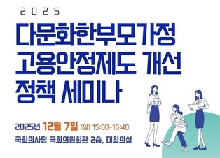 [메가경제=양대선 기자] 사단법인 글로벌비전과 비영리민간단체 글로벌한부모센터, 다문화사랑회는 정태호 더불어민주당 의원과 공동으로 오는 7일 오후 3시 국회의사당 국회의원회관 대회의실에서 ‘2025 다문화한부모가족 고용안정제도 개선 정책 세미나’를 개최한다.이번 세미나는 생명보험사회공헌위원회, 교보생명, 사회연대은행 함께만드는세상이 후원하는 ‘다문화한부모가정