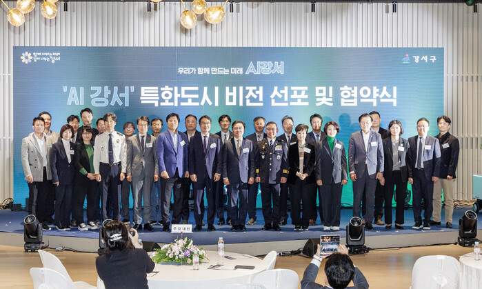 비전선포식에서 진교훈 강서구청장, 한정애·진성준·강선우 국회의원, 박성호 강서구의회 의장, 유관 기관·기업 관계자와 시민 등 80여 명이 참석해 ‘AI 특화도시 강서’ 비전을 공유했다.