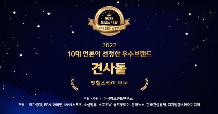 [메가경제=이석호 기자] 아시아브랜드연구소는 디펫바이오에서 출시한 반려동물 잇몸 치아 관리 제품 '견사돌'이 국내 10대 언론이 뽑은 '대한민국 브랜드대상' 2022 펫 헬스케어 부문 우수 브랜드로 선정됐다고 18일 밝혔다