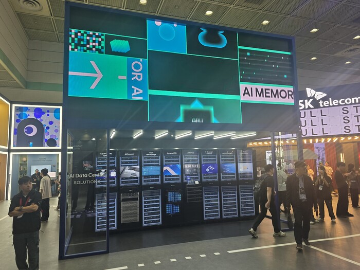 ▲SK텔레콤 '월드IT쇼' 전시부스에 마련된 'AI 데이터센터' 구현 부스. [사진=메가경제]