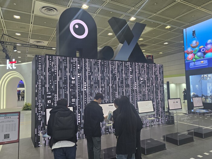 전시장 중앙에 마련된 ‘AX 플랫폼’ 공간에서는 관람객들의 체험이 이어졌다. KT의 자체 AI 모델 ‘믿음 K Pro’를 직접 활용해보는 부스에는 체험 대기줄이 형성됐고, AI·클라우드 기반의 에이전틱 AICC(인공지능 컨택센터)와 보안·안전 AX 서비스도 함께 소개됐다. 특히 공공·금융·제조 등 산업별 적용 사례가 구체적으로 제시되며, 기업 현장에서의 활용 가능성을 강조하는 모습이었다.