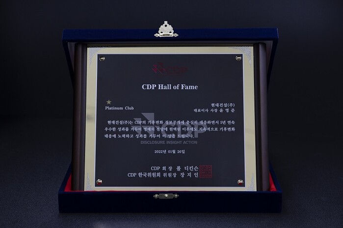 | ▲ 현대건설_CDP_플래티넘 입성 상패 [현대건설 제공] |