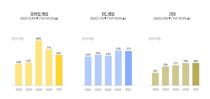 특히, 모바일 게임 매출이 크게 줄었다. 대작 부재와 함께 ‘가디언테일즈’ 출시 효과가 둔화되면서 전분기 대비 15.8%나 감소한 601억 원을 기록했다. 지난해 3분기를 정점으로 하향세가 이어지고 있는 것이다.
