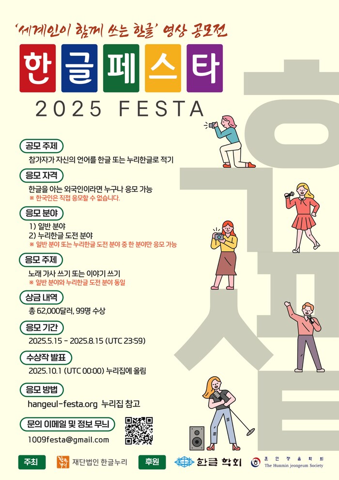 [메가경제=심영범 기자]재단법인 「한글누리(이하 한글누리)」가 개최한 세계인이 함께 쓰는 한글 영상 공모전 '한글페스타 2025'가 성황리에 마무리됐다.