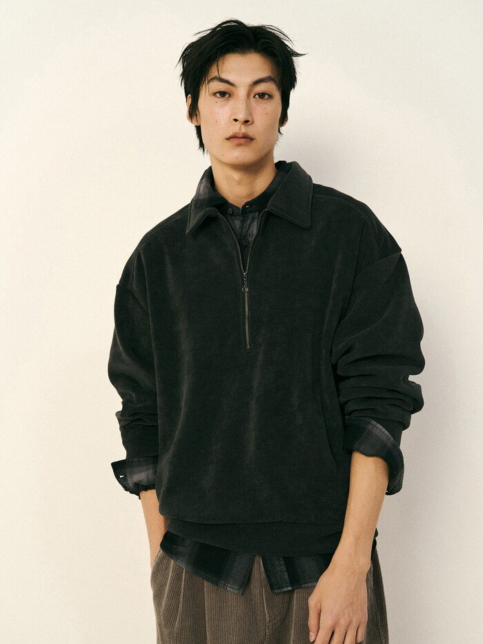 GLXY는 ‘셔닐 하프 집업 티셔츠’, ‘울 혼방 하프 집업 스웨터’ 등을 통해 비즈니스 캐주얼과 일상복을 아우르는 집업 스타일링을 선보이며 소비자 호응을 얻고 있다.