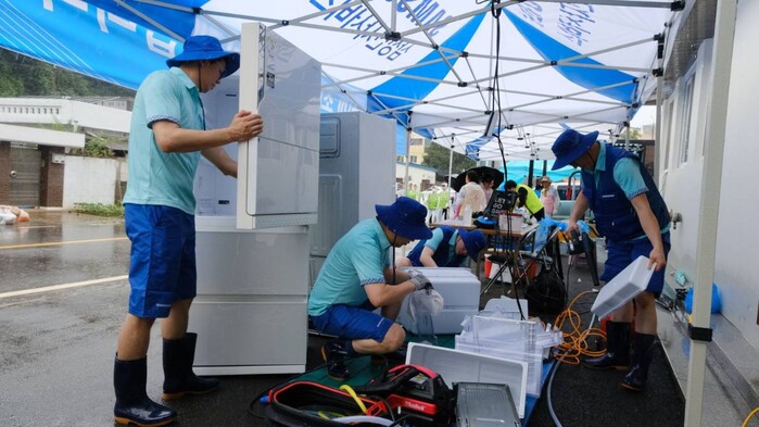수해 복구 특별서비스팀은 청주 오송(오송읍 행정복지센터), 충북 괴산 (불정면 주민센터), 충남 공주(옥룡동 경로당)에 이동식 서비스센터를 설치하고 침수 가전제품 세척 및 무상 점검 등 서비스를 제공하고 있다.