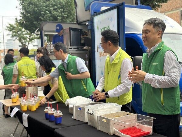 NH농협은행은 연일 계속되는 무더위에도 업무에 여념이 없는 고객행복센터 상담사들에게 아이스 아메리카노와 아이스티 등 다양한 차를 무료로 제공했다.