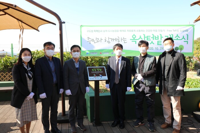 [메가경제= 임준혁 기자] 인천항만공사(IPA)는 지역 사회와의 포용적 성장을 위해 추진 중인 2020년 더 나은 지역 만들기 1호 사업 ‘옥상 텃밭(Free-Talk 밭)’을 완료하고 개소식을 개최했다고 29일 밝혔다.