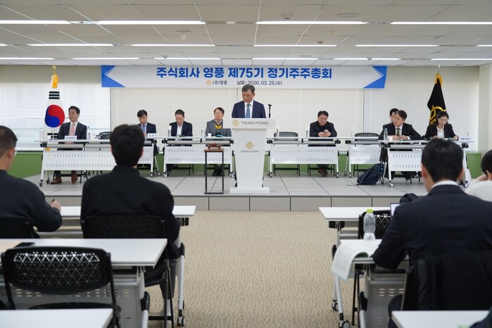 [메가경제=박제성 기자] 영풍은 25일 서울 강남구에 있는 영풍빌딩에서 제75기 정기주주총회(주총)를 개최한 가운데 이날 회사 측이 상정한 안건이 모두 가결됐다고 밝혔다. 소수 주주인 KZ정밀이 제안한 안건은 주주들의 반대로 모두 부결됐다.