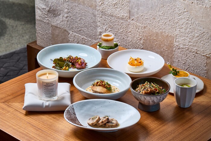 호텔 최고층 더 라운지에서 선보이는 이번 디너는 메종 마르지엘라 ‘바이 더 파이어 플레이스’의 스모키함과 부드러운 달콤함을 모티프로, ‘불과 숲’을 주제로 한 모던 한식 코스로 구성됐다. 캔들의 주요 노트인 스모크, 구운 밤, 우디 향, 바닐라를 제철 재료와 훈연·로스팅 기법으로 표현했다.