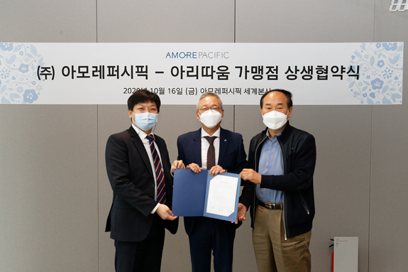 [메가경제=최낙형 기자] 최근 국회 정무위원회 국정감사에서 가맹점 불공정 거래 행위로 지적받은 아모레퍼시픽이 아리따움 가맹점 협의체인 전국 아리따움 경영주 협의회(전경협), 전국 아리따움 점주 협의회(전아협)와 16일 상생 협약을 체결했다.