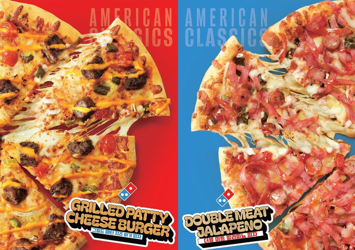 도미노피자는 아메리칸 스타일의 정통성을 강조한 ‘아메리칸 클래식 피자’ 2종을 출시했다고 6일 밝혔다. 이번 신제품은 ‘그릴드 패티 치즈 버거 피자’와 ‘더블 미트 할라피뇨 피자’로 구성됐다.