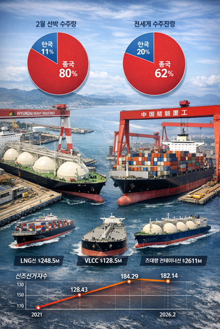 글로벌 조선 발주 늘었지만…2월 중국 선박 수주량 80% '독주', 한국과 격차 확대