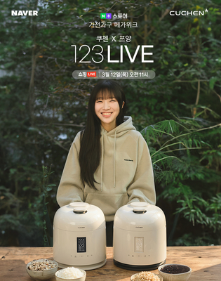 [메가경제=심영범 기자]쿠첸이 인기 먹방 크리에이터 쯔양과 함께 라이브 커머스를 통해 밥솥 마케팅 강화에 나선다. 쿠첸은 오는 12일 오전 11시 네이버 쇼핑라이브에서 60분간 ‘쿠첸X쯔양 123 라이브’ 방송을 진행한다고 11일 밝혔다. 이번 방송은 지난해 두 차례 진행한 쯔양 협업 라이브가 소비자들로부터 높은 호응을 얻은 데 따른 것이다. 1310만