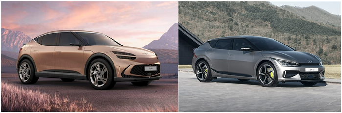 | ▲ 제네시스 GV60(좌) '애슬레틱 엘레강스'를, 기아 EV6(우)는 '오퍼짓 유나이티드'를 디자인 언어로 강조하고 있다. [사진=현대자동차 제공] |