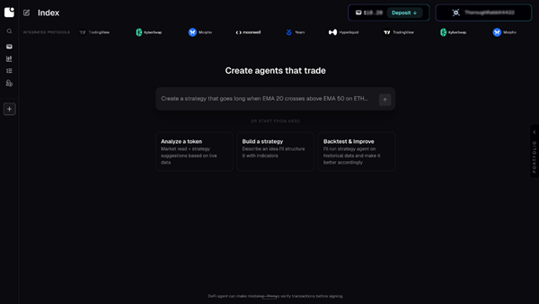 인덱스는 전략의 구상 단계부터 실거래 투입까지의 복잡한 절차를 단일 시스템 내에서 일괄적으로 지원한다. 사용자가 시장 진입 및 청산 규칙, 레버리지 허용 범위, 위험 관리 기준 등을 문장으로 묘사하면 시스템이 이를 파악하여 규격화된 거래 조건으로 치환한다.