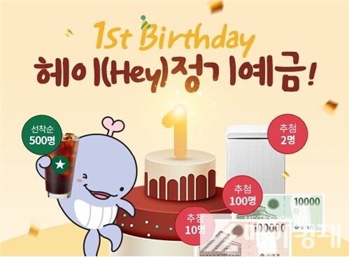 Sh수협은행(은행장 김진균)은 ‘헤이(Hey)정기예금’ 출시 1주년을 기념해 공기청정기, 백화점 상품권 등 푸짐한 경품을 증정하는 ‘헤이(Hey)정기예금 1st Birthday’ 이벤트를 실시한다고 21일 밝혔다.