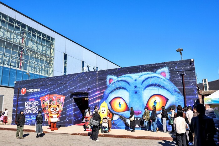 농심은 행사장 중앙에 마련된 K푸드 체험공간 ‘F&B Zone’ 인근에 농심 플래그십 부스를 마련했다. 부스 내부에 미국 현지에서 판매 중인 ‘케이팝 데몬 헌터스’ 협업 신라면을 선보이고 있다.