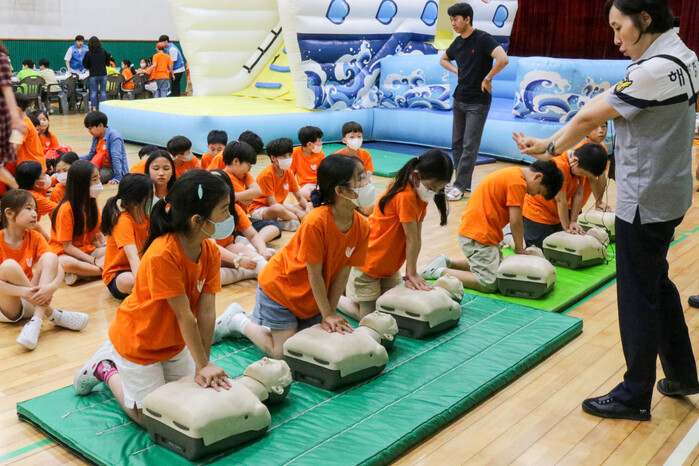 ▲ 현대모비스가 '2023 투명우산 나눔 캠페인'의 일환으로 다양한 교통수단에서 발생할 수 있는 안전사고에 대한 올바른 인식과 안전행동을 기르는 ‘찾아가는 어린이 교통안전 체험교육’을 실시했다. [사진=현대모비스] |