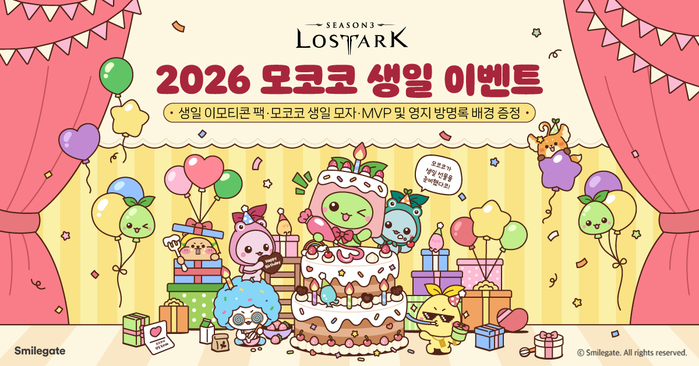 스마일게이트는 MMORPG ‘로스트아크’에서 마스코트 ‘모코코’의 생일을 기념한 이벤트를 오는 4월 29일까지 진행한다. 매년 4월 5일을 기념해 열리는 행사로, 올해는 ‘생일 케이크 만들기’를 콘셉트로 참여형 콘텐츠를 강화했다.