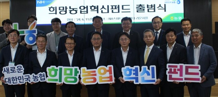 출범을 알린 '희망농업혁신펀드'는 농촌 현장에 적용 가능한 혁신기술을 보유한 기업에 투자하는 511억원 규모의 펀드다. 농협은행과 NH투자증권이 공동운용사로 참여한다. 기금 조성을 위해 상호금융(200억원), 농협은행(150억원), NH투자증권(151억원), NH캐피탈(10억원) 등 농협 계열사가 힘을 모았다.